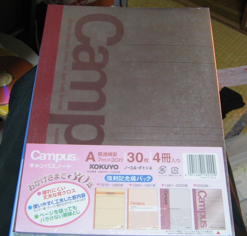 コクヨの楽天内ショップ「三月うさぎ館」で通販を行う、ということで購入(商品ページ)。A罫B罫セットに30周年記念パックをそれぞれ2つづつ合計6パック、しめて3548円なり。