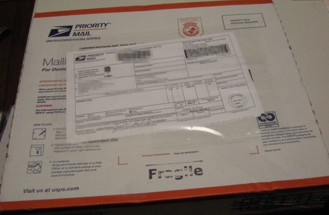 今回も、USPSの専用パッケージに入って到着。たしかその4のときにも似たような箱(ただしあの時はGlobal Priority Mailだった)で来ましたね。
