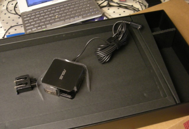 ACアダプターのコンセント部分は外れるのですが、これは恐らくコンセント部分だけ各国向けで別々になっていて、ACアダプターは各国共通、という仕掛けなのでしょう。ただ取り回しを考えると、アダプター本体からコンセントへ伸びるケーブルを脱着式で作って、そこを各国別に分けるという方式のほうが嬉しかったかも。