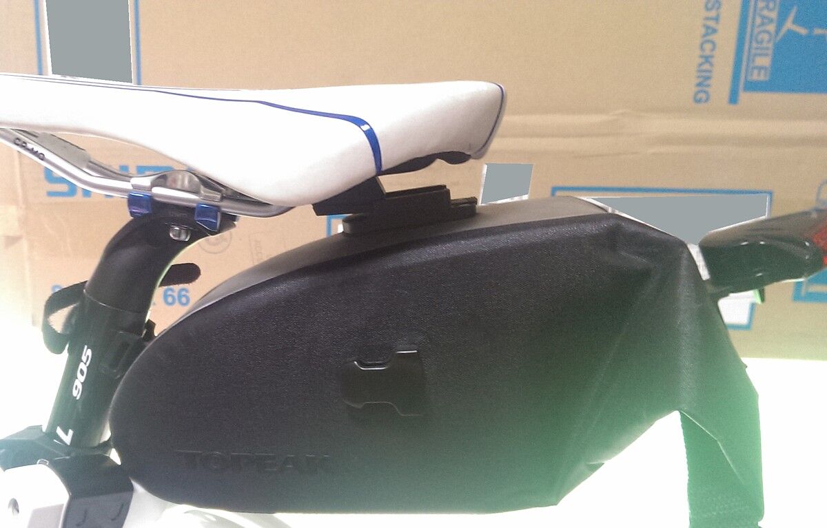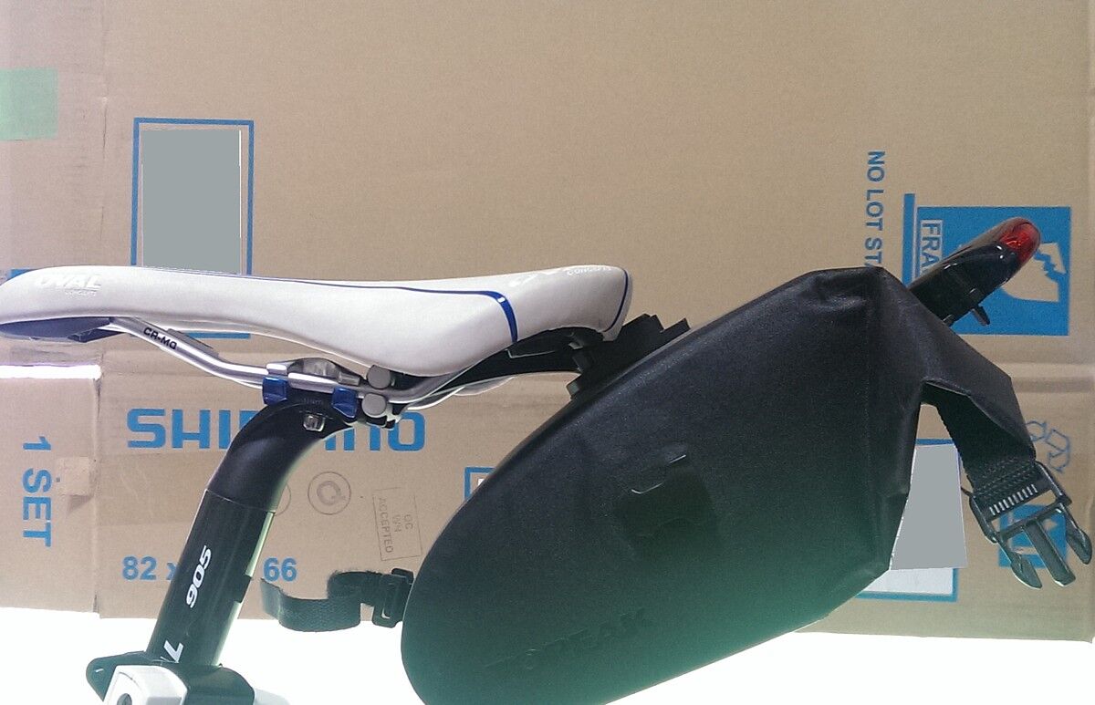 サドルをもう少し後ろにずらせばはまるんですが、ポジションが変わってしまうので余りやりたくない。となるとサドルバッグを新しいのに買い換えるかあるいは……、というところでみつけたのがこちら。