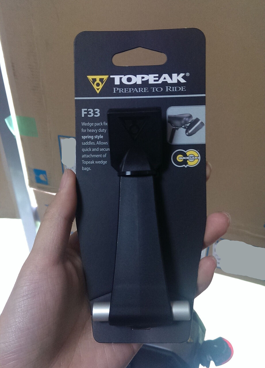 TOPEAKが出している別売りフィクサーの一つ、F33というタイプの物です。標準のF25フィクサーより取り付け部分が長くなっているので、これならシートポストに当たらないはず。